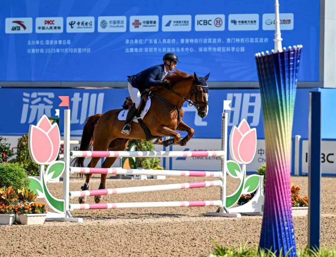 十五运会在赛场设计上也颇具匠心,将岭南风情与竞技需求巧妙结合,让运动员在激烈比拼中也能感受浓厚地域文化。深圳赛区的马术项目场地障碍赛堪称典范,“小蛮腰”(广州塔)、“春笋”(中国华润大厦)等广东地标模型竖立赛场,岭南花卉图案装饰障碍栏架,吉祥物“喜洋洋”“乐融融”的形象灵动穿插,鲜艳明快的配色既彰显了岭南热情,更得到了运动员的认可。上海骑手郑文杰表示,鲜艳的障碍栏架设计能帮助马匹集中注意力,助力赛事发挥。东莞赛区则在篮球比赛节间休息时,加入凸显岭南文化的国乐表演《可园可源》。节目以国乐演奏搭配舞蹈情景表演,再现了岭南画派先驱“二居”(居巢、居廉)客居东莞可园、创新绘画技法的艺坛佳话,让观众在赛事间隙领略崇文尚艺的岭南文化。