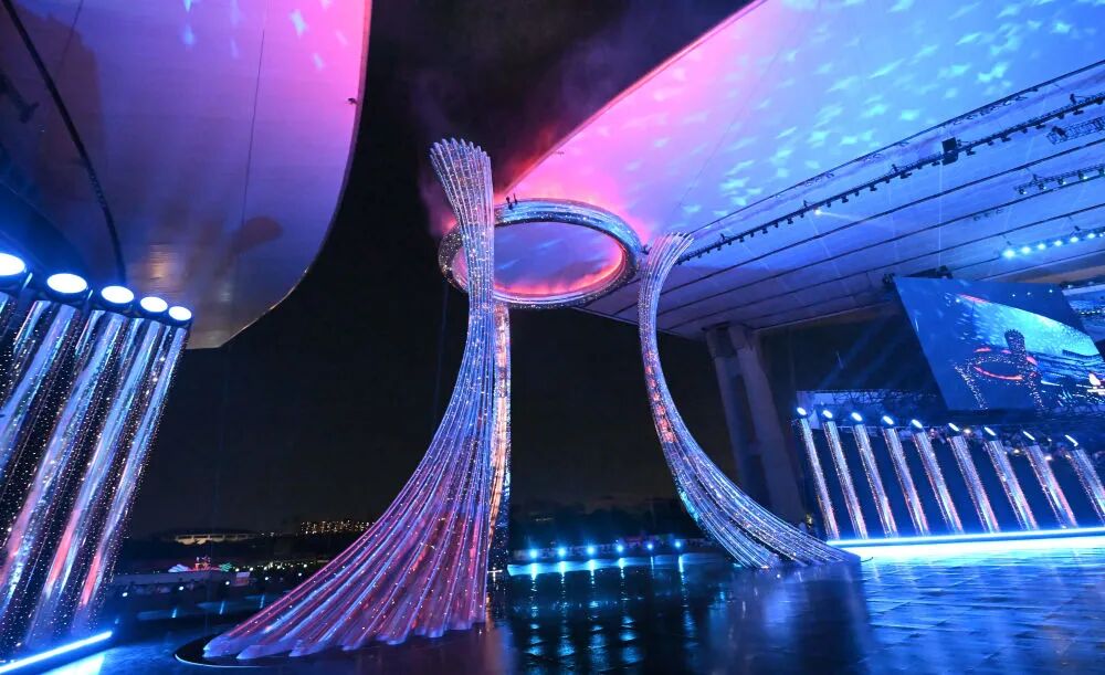 此外,主火炬塔的“无火燃烧”,则是一场关于绿色经济的实践。传统火炬塔的碳排放是笔不小的数字,此次熊熊“燃烧”的火光则并非真实火焰,简言之,是用水雾塑造火焰之形,用光电科技赋予火焰之魂。