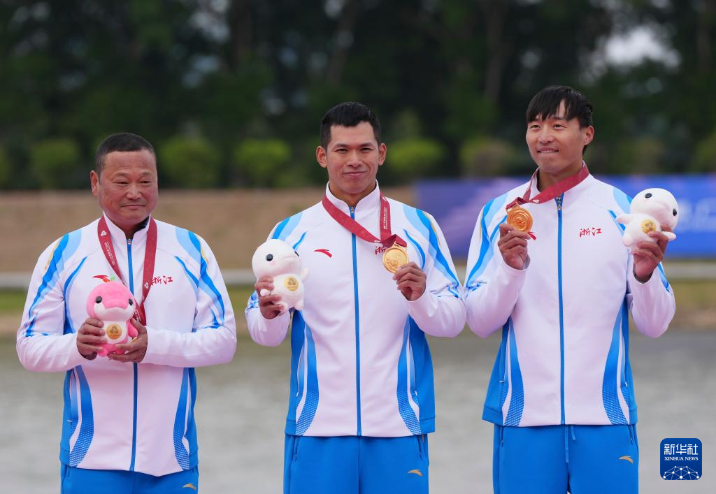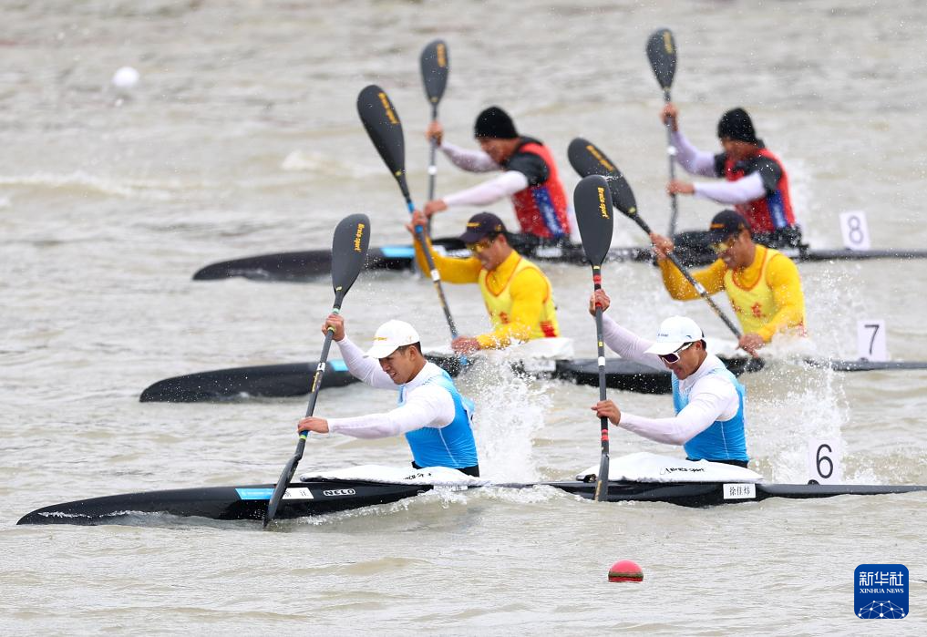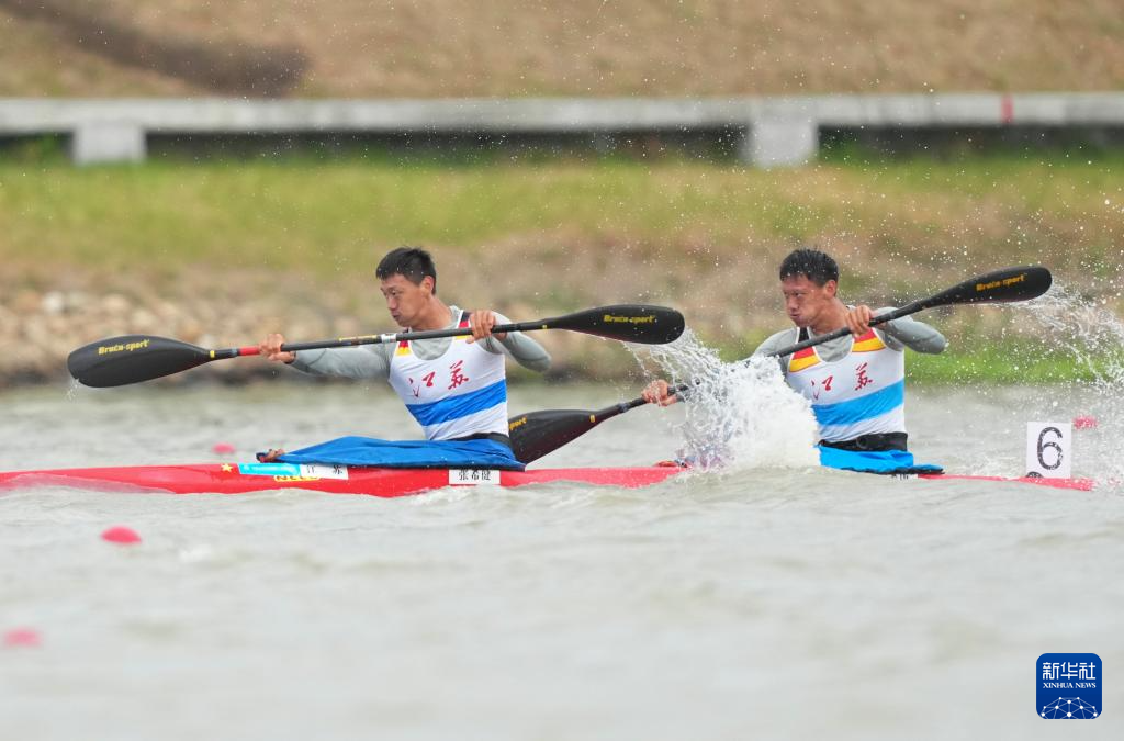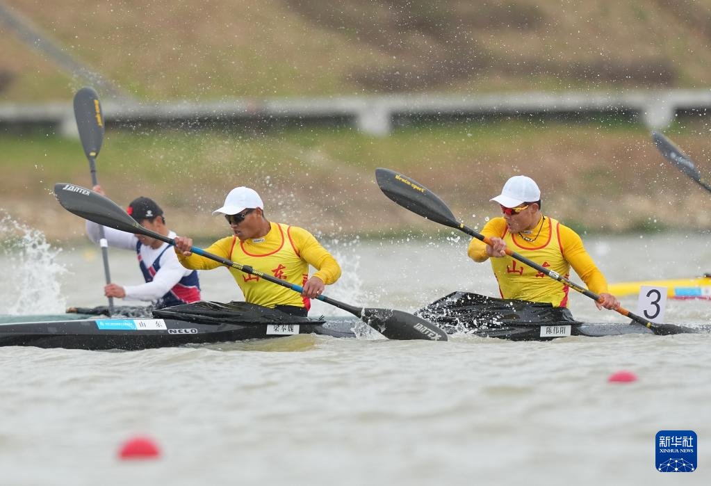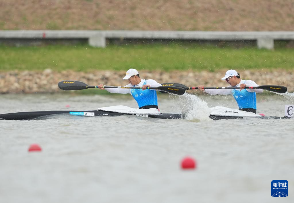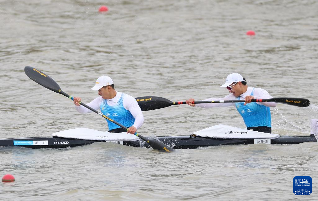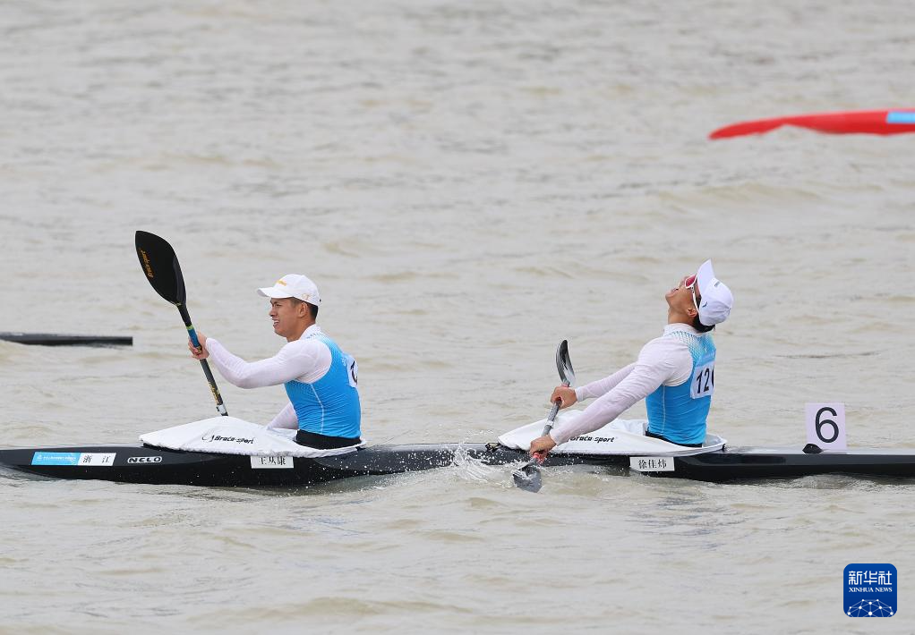 11月19日,第十五届全国运动会皮划艇静水项目男子500米双人皮艇决赛在广州举行,浙江队组合王丛康/徐佳炜获得冠军。