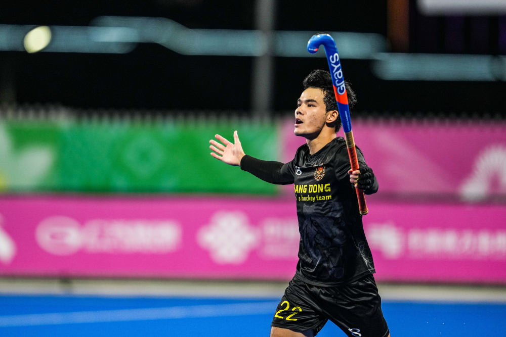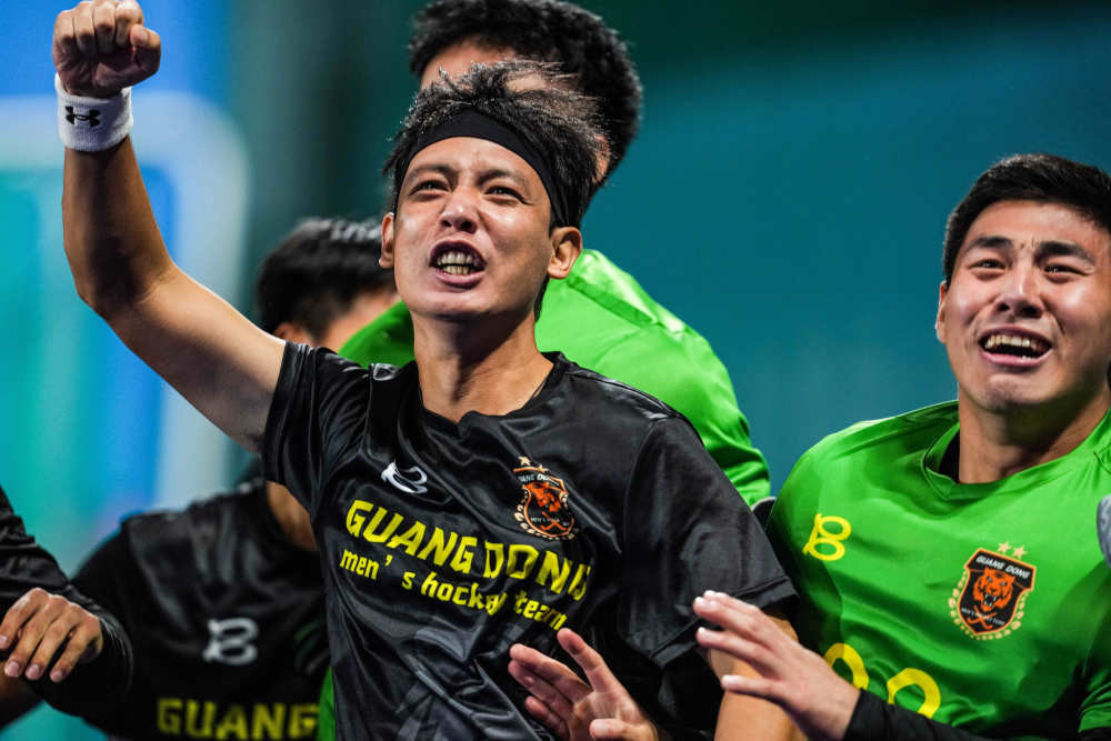 11月13日在广东云浮进行的第十五届全运会男子曲棍球半决赛中上演戏剧性一幕:卫冕冠军广东队在最后时刻利用短角球机会1:1“绝平”辽宁队,并在23米球决战中击败对手,闯入决赛。