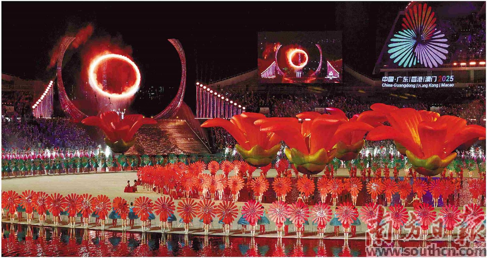 11月9日晚,十五运会开幕式在广东奥林匹克体育中心举办。其中,文体展演以“圆梦未来”为主题,包含“同根同源”“同心同缘”“同梦同圆”三个篇章。开幕式营造出磅礴气势,呈现出一幅独具岭南文化深厚底蕴、彰显科技与艺术精彩创意、展现湾区共融时代风采的恢宏画卷。