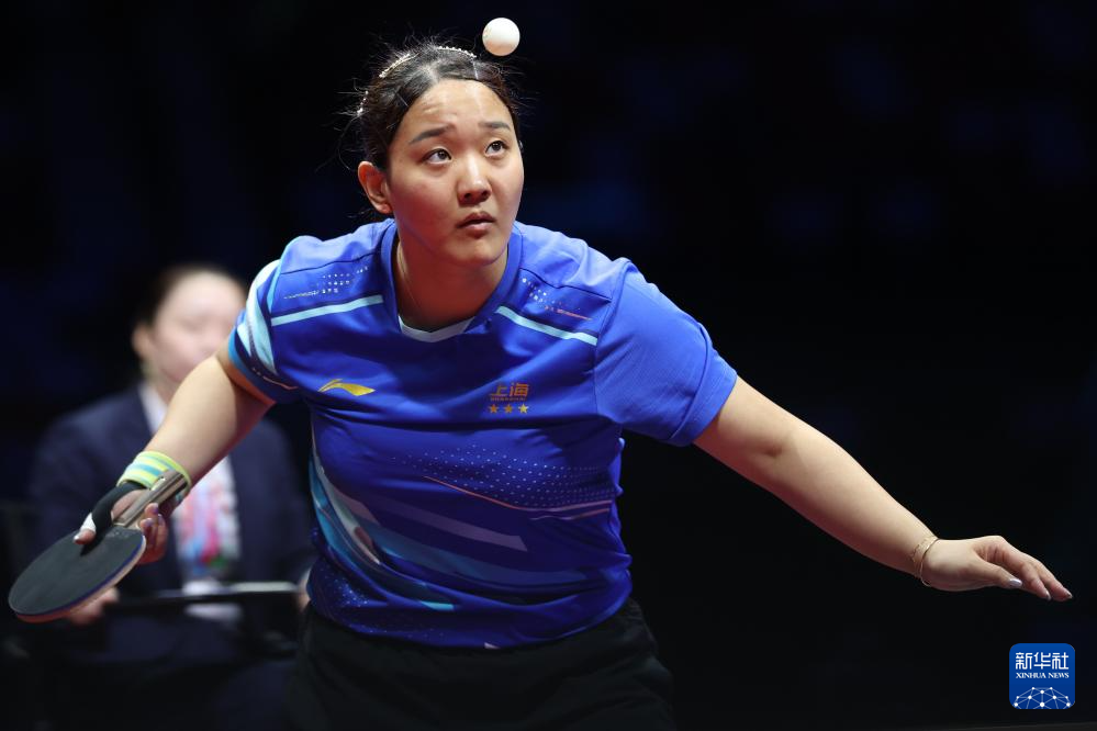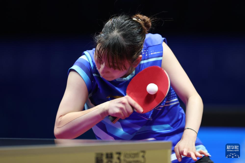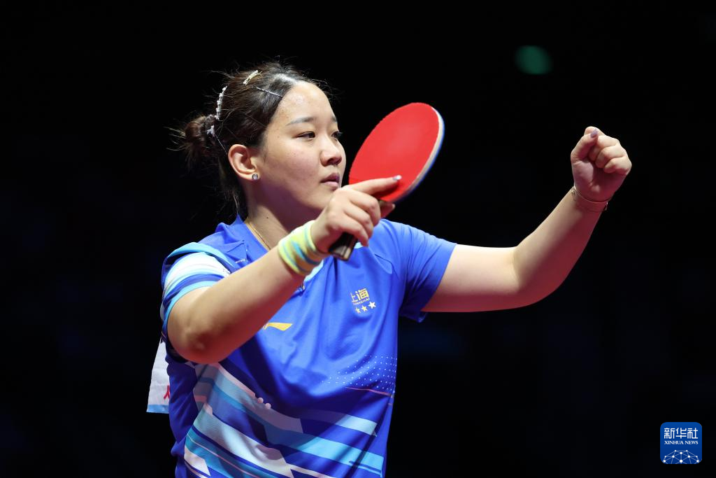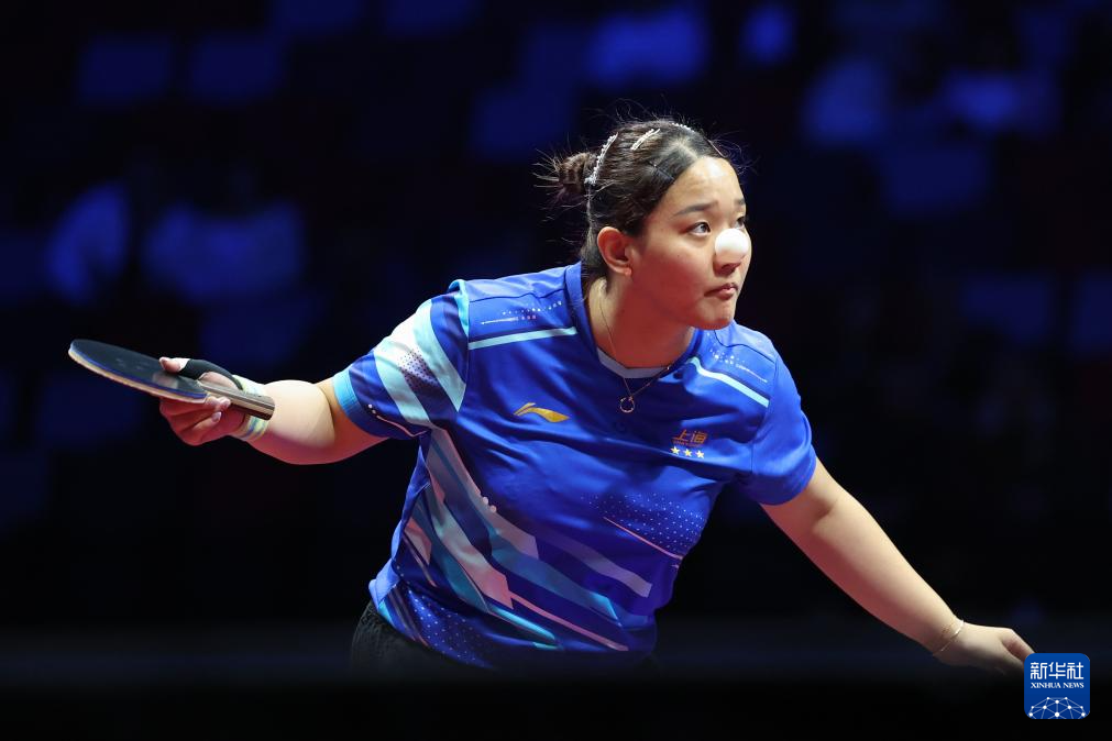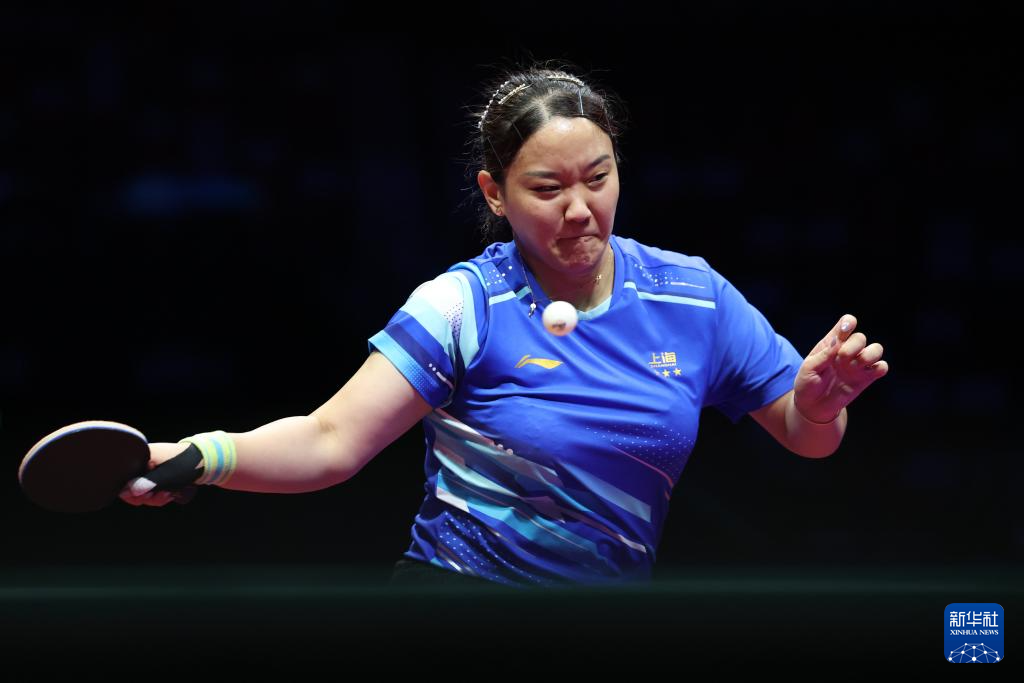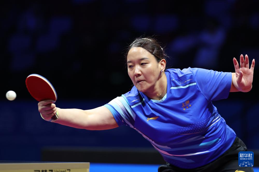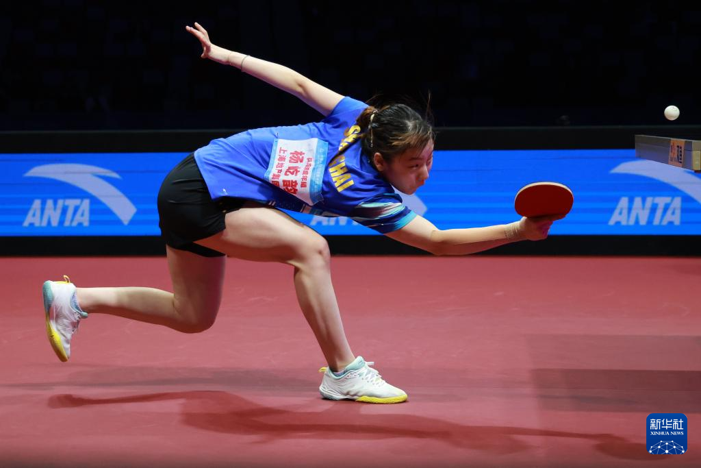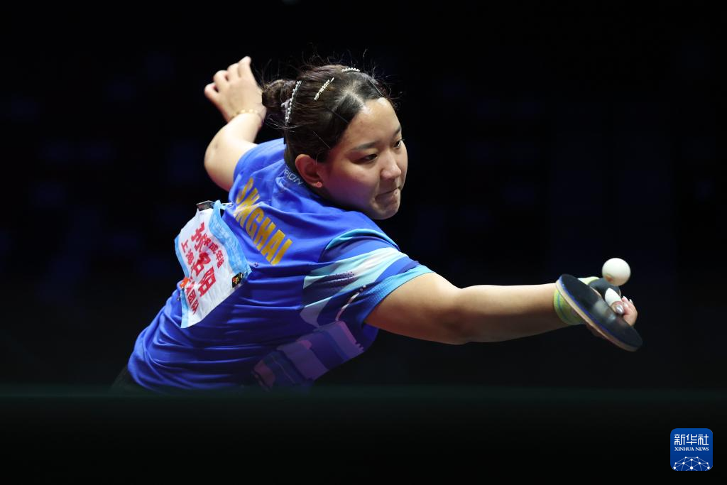 11月19日,上海队选手孙铭阳在比赛中,她3比2战胜黑龙江队选手范姝涵。新华社记者 刘续 摄