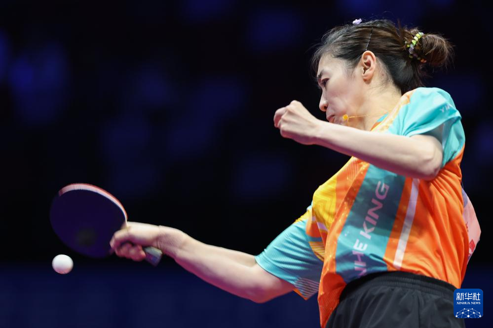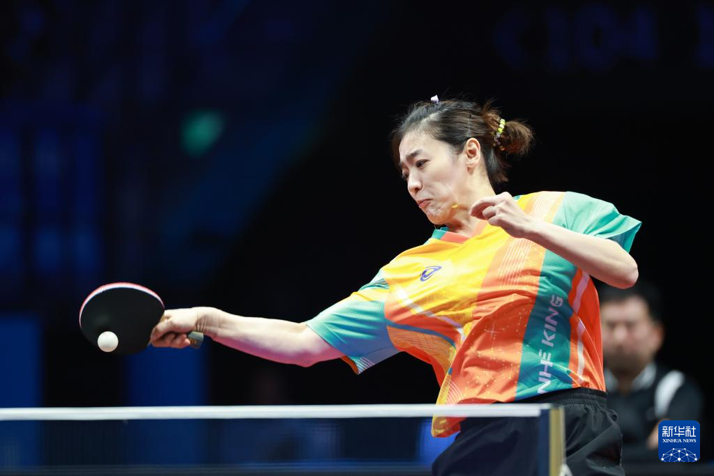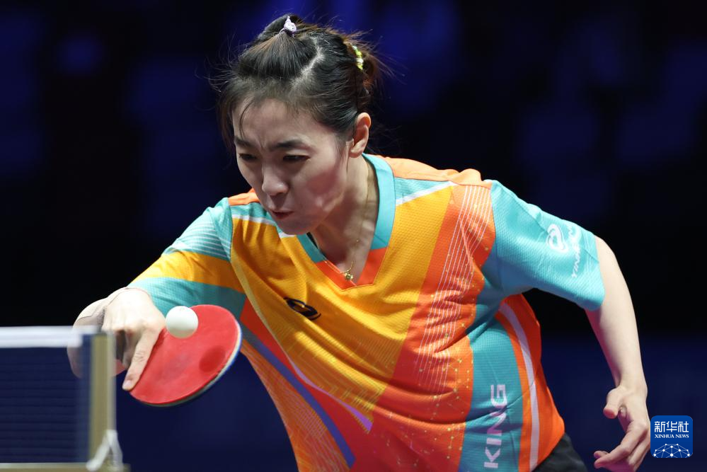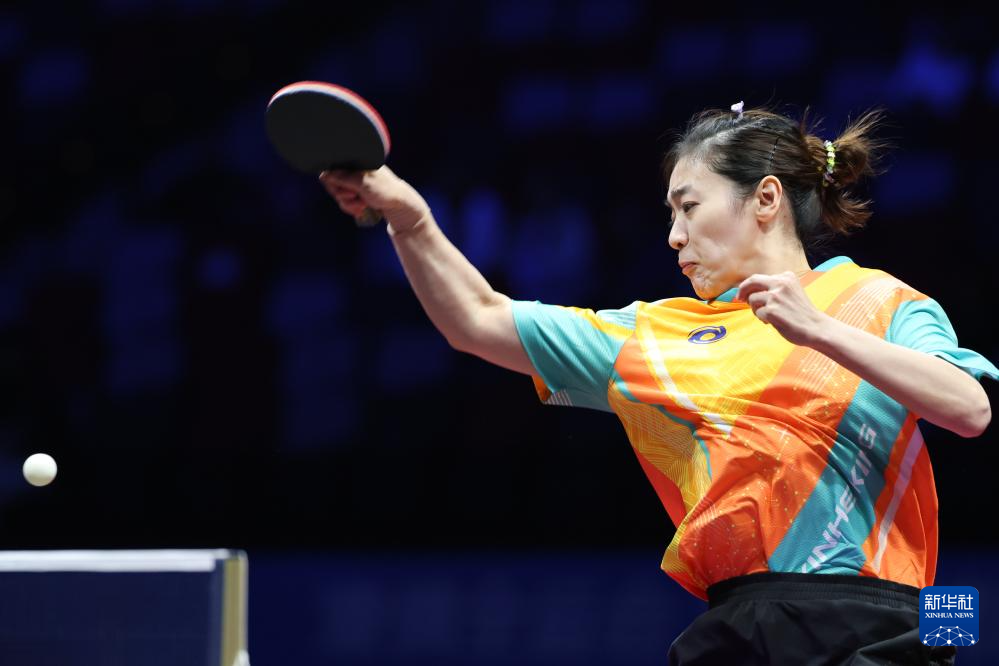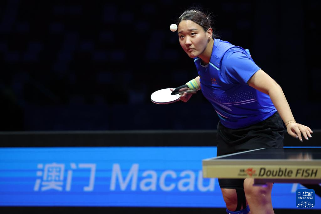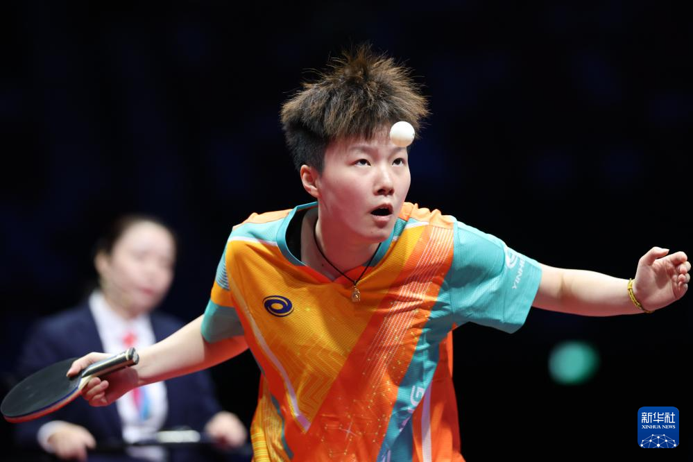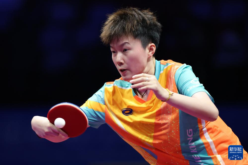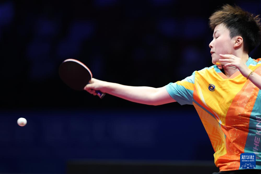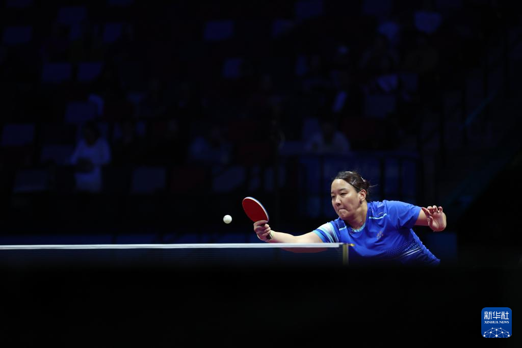 11月19日,上海队选手孙铭阳在比赛中,她3比2战胜黑龙江队选手范姝涵。新华社记者 刘续 摄
