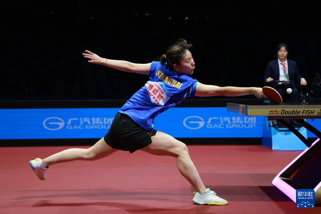 11月19日,上海队选手杨屹韵在比赛中回球,她3比1战胜黑龙江队选手车晓曦。新华社记者 梁旭 摄