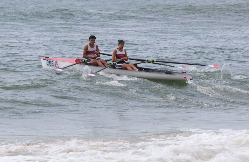 当天,位于阳江市海陵岛的海岸赛艇比赛现场风浪不断,对各参赛队伍都带来一定挑战。“这个项目肯定会有风浪,我们此前也做过针对性训练,尤其是在借浪等细节上比较注重。”广东海岸赛艇队教练李家豪说。