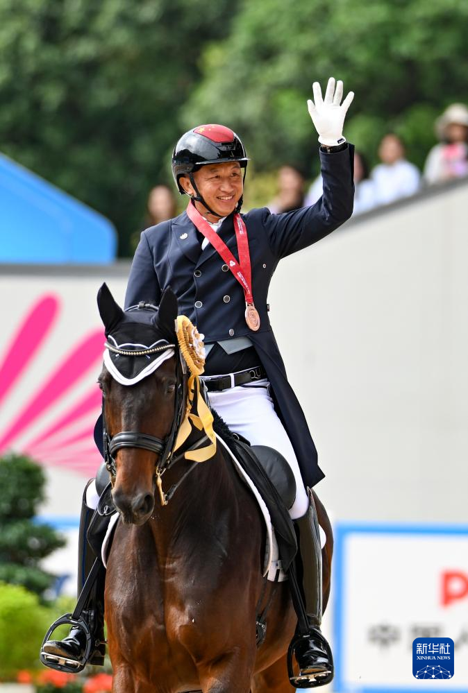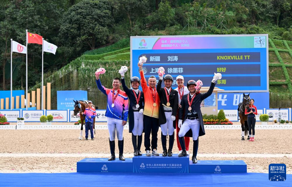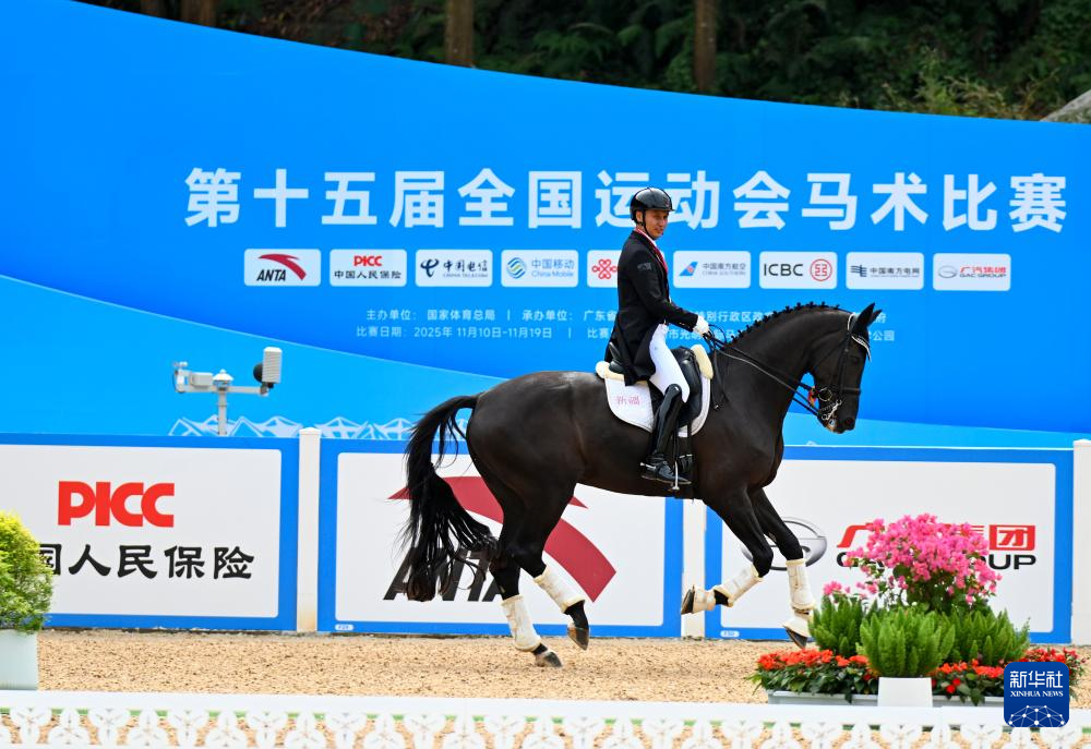 11月12日,第十五届全国运动会马术项目盛装舞步个人赛决赛在广东深圳光明国际马术中心举行。