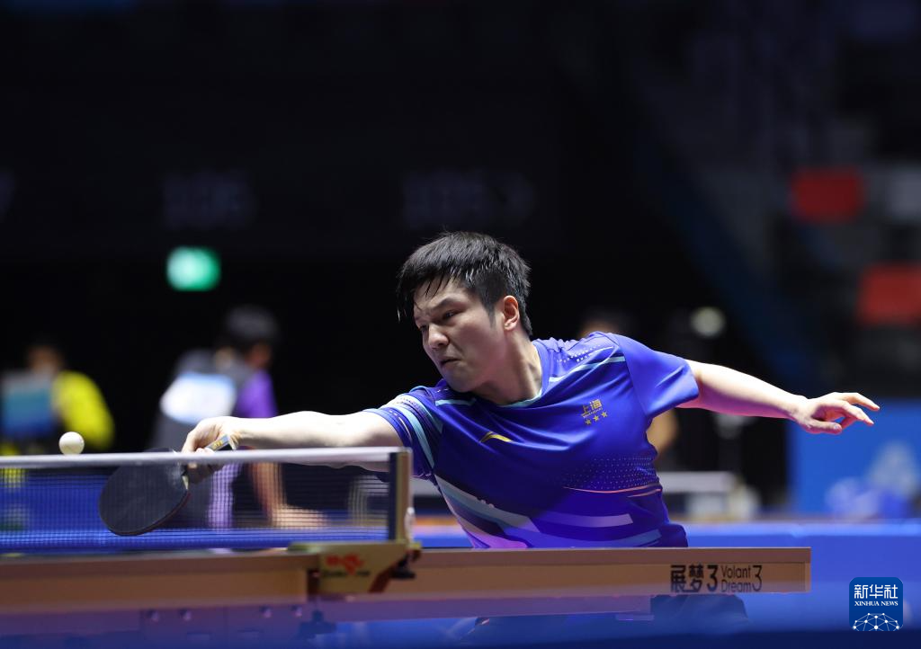 11月13日,上海队选手樊振东在比赛中回球。梁旭 摄