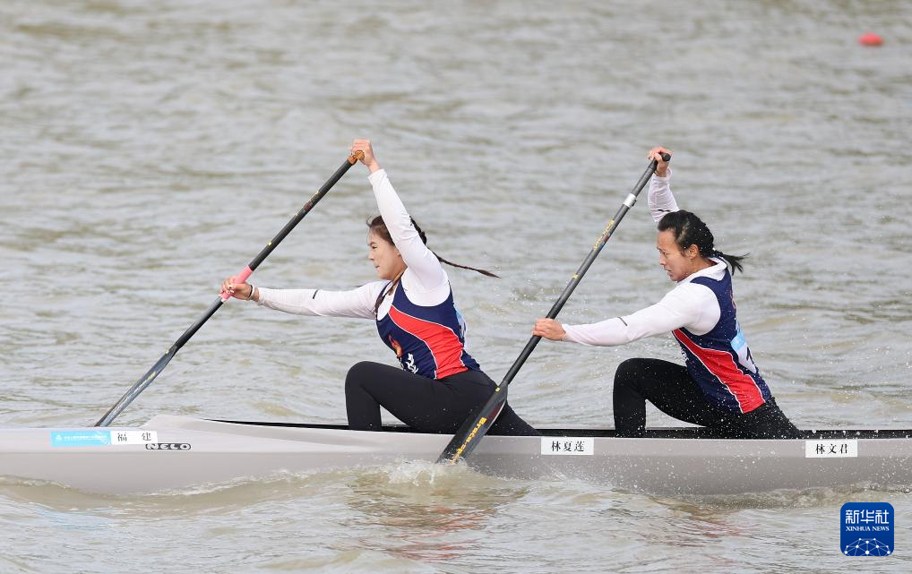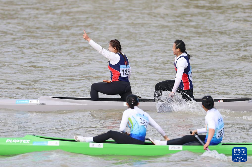 11月20日,第十五届全国运动会皮划艇静水项目女子200米双人划艇决赛在广州举行。