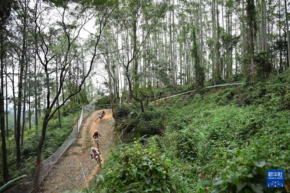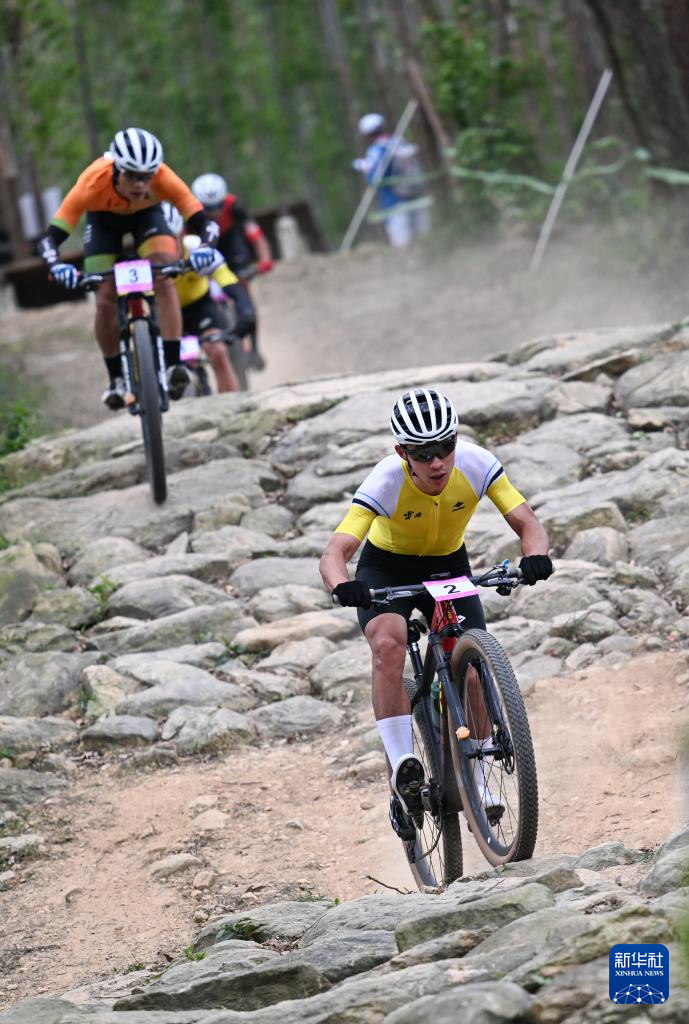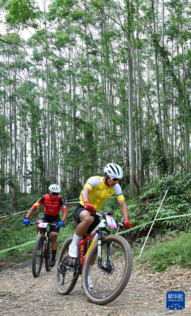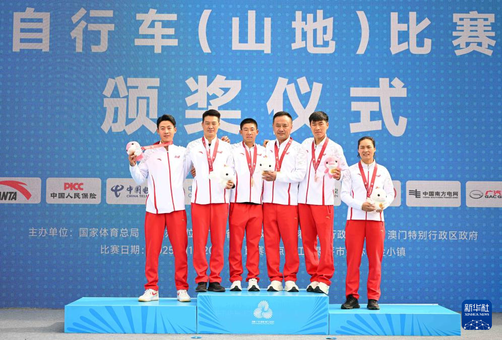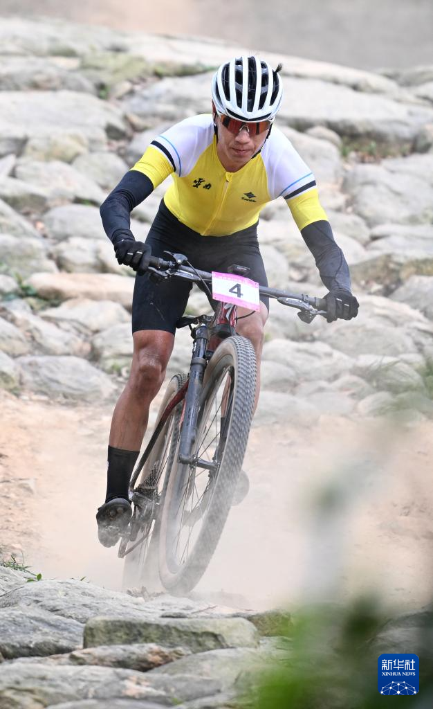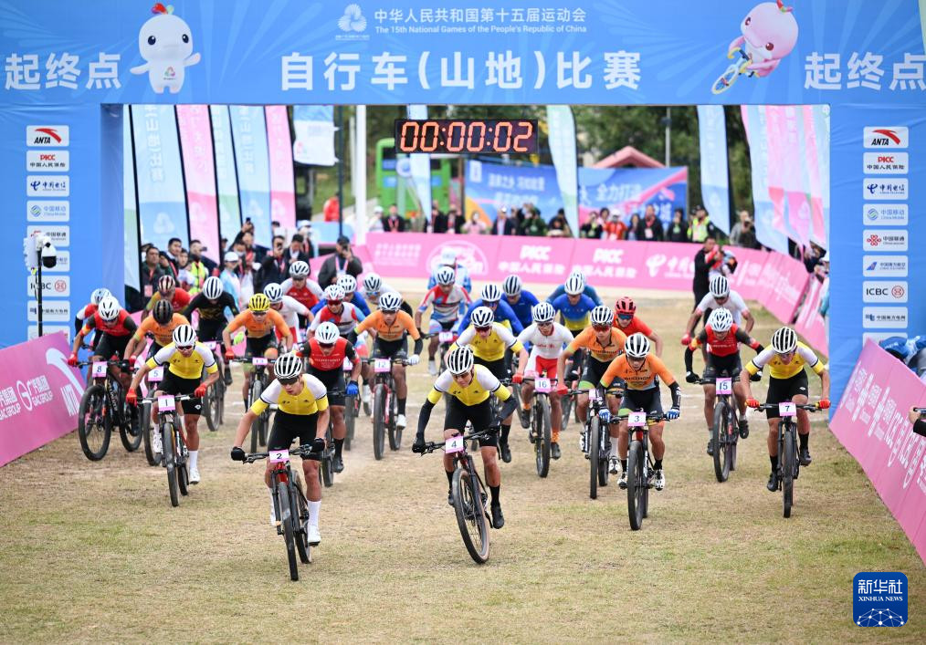 11月20日,在广东江门举行的第十五届全国运动会山地自行车男子越野赛决赛中,云南队选手吕先景、袁金伟和何学辉分获冠、亚、季军。