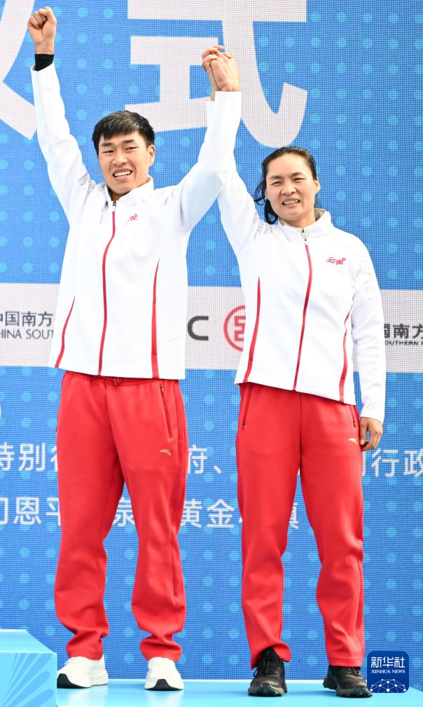 11月20日,云南队选手袁金伟(前)在比赛中。最终他获得亚军。
