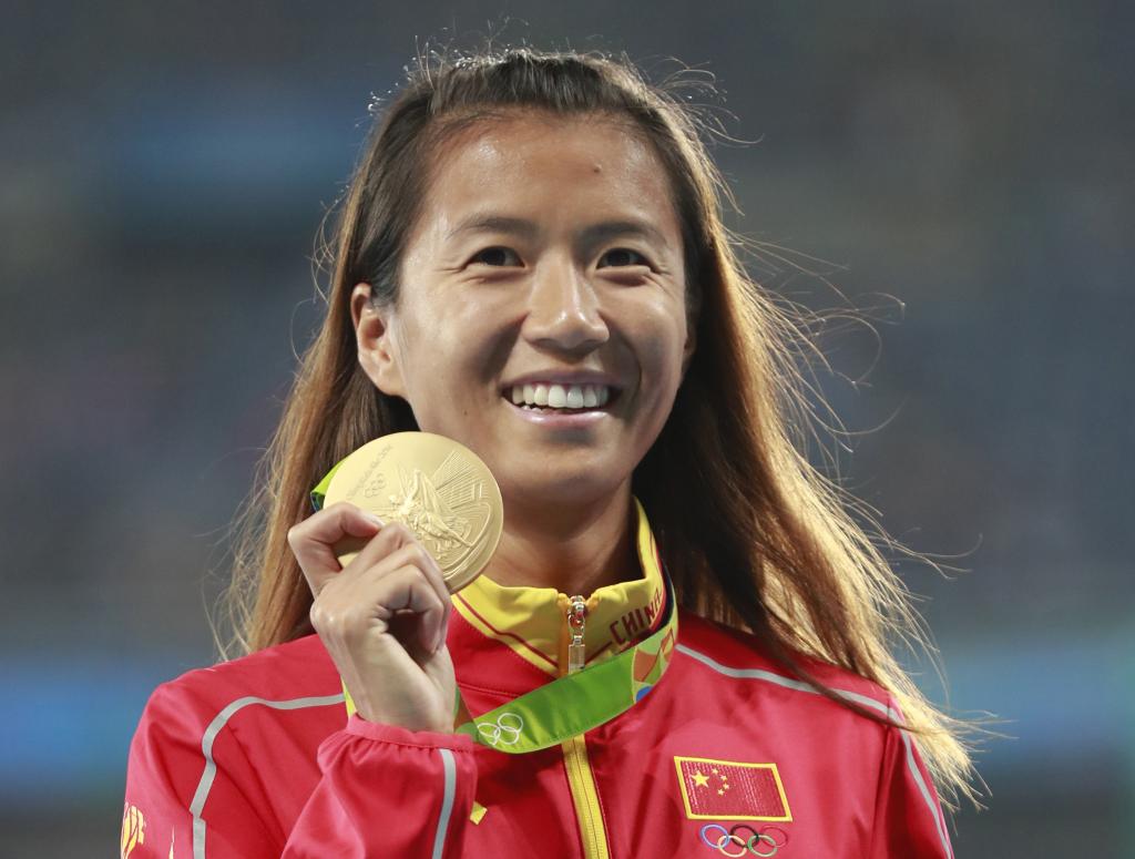 2016年8月19日,里约奥运会田径女子20公里竞走比赛中,中国选手刘虹以1小时28分35秒的成绩夺冠。新华社记者 任正来 摄