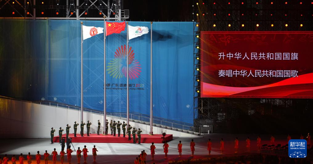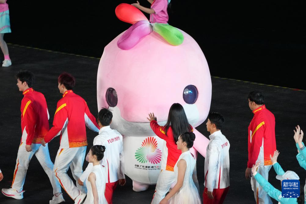11月21日,广东、香港和澳门代表团代表在闭幕式上一同入场。新华社记者 毛思倩 摄