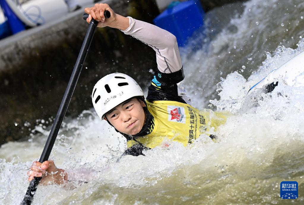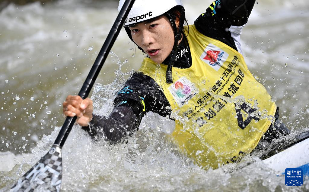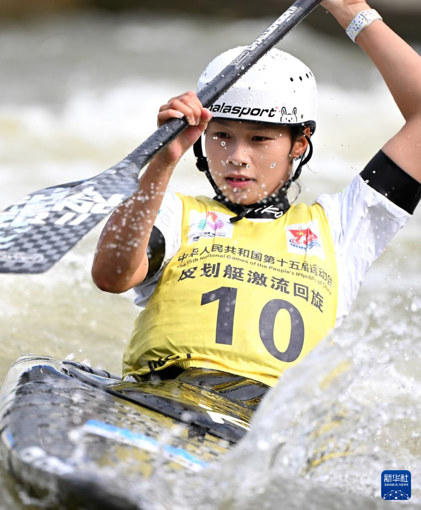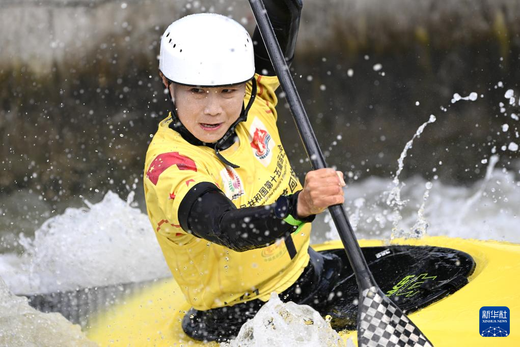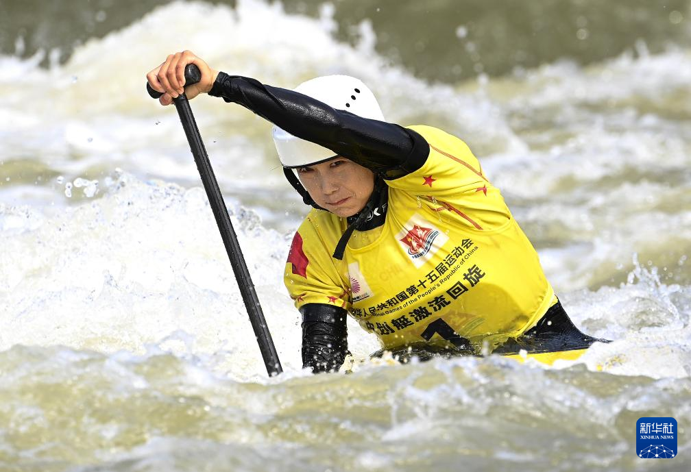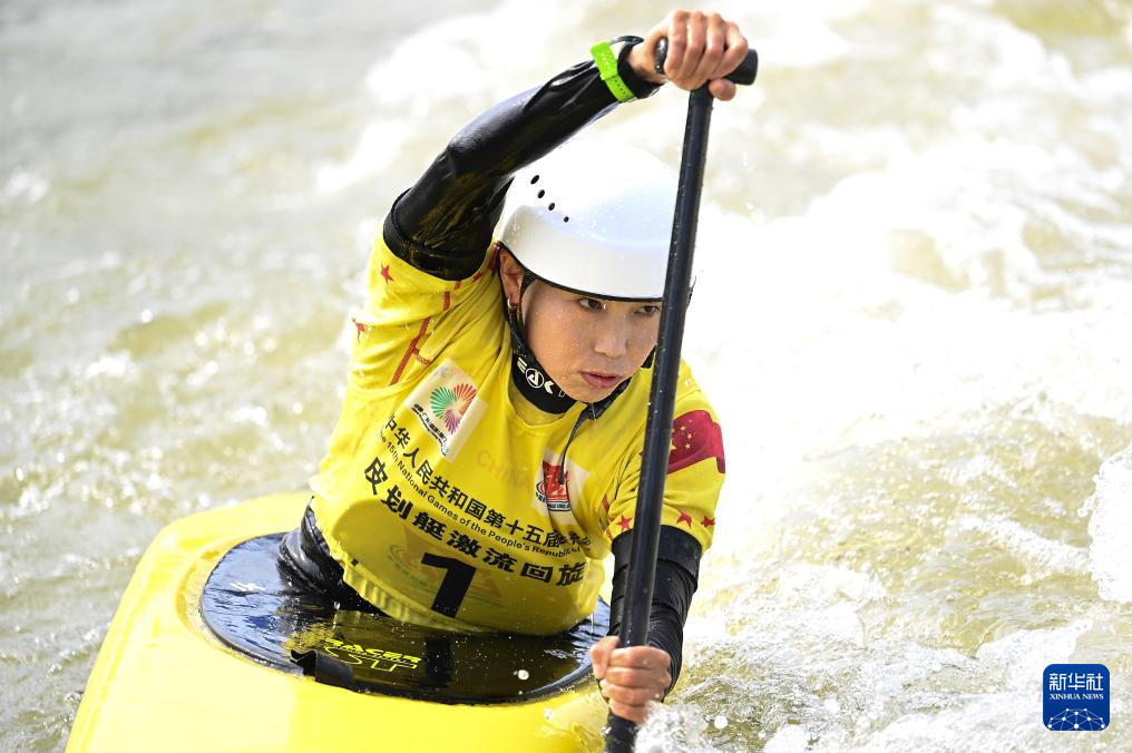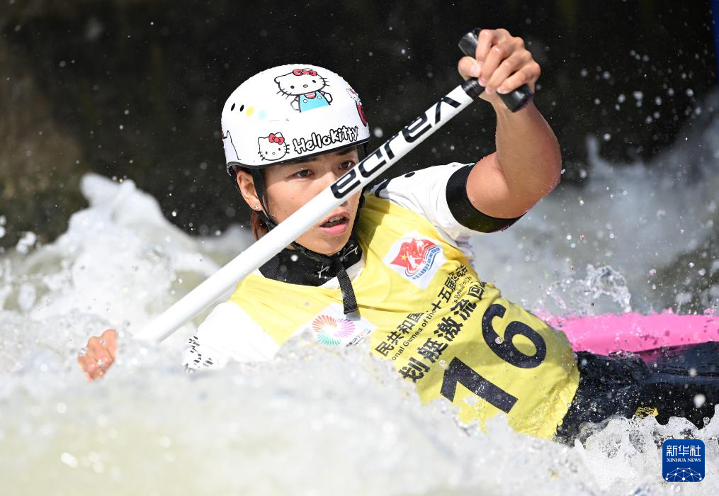 11月14日,第十五届全国运动会皮划艇激流回旋项目女子单人划艇决赛在广州举行。