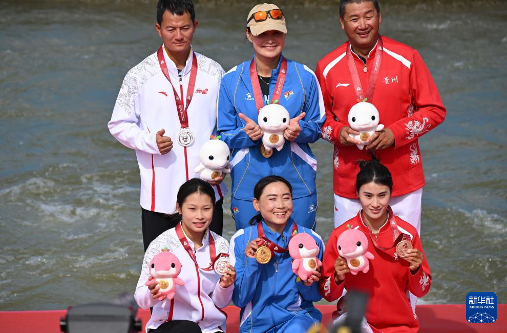 11月14日,冠军辽宁队选手陈诗(下中)、亚军云南队选手杨婷(下左)、季军贵州队选手黄娟(下右)和教练员在颁奖仪式上。