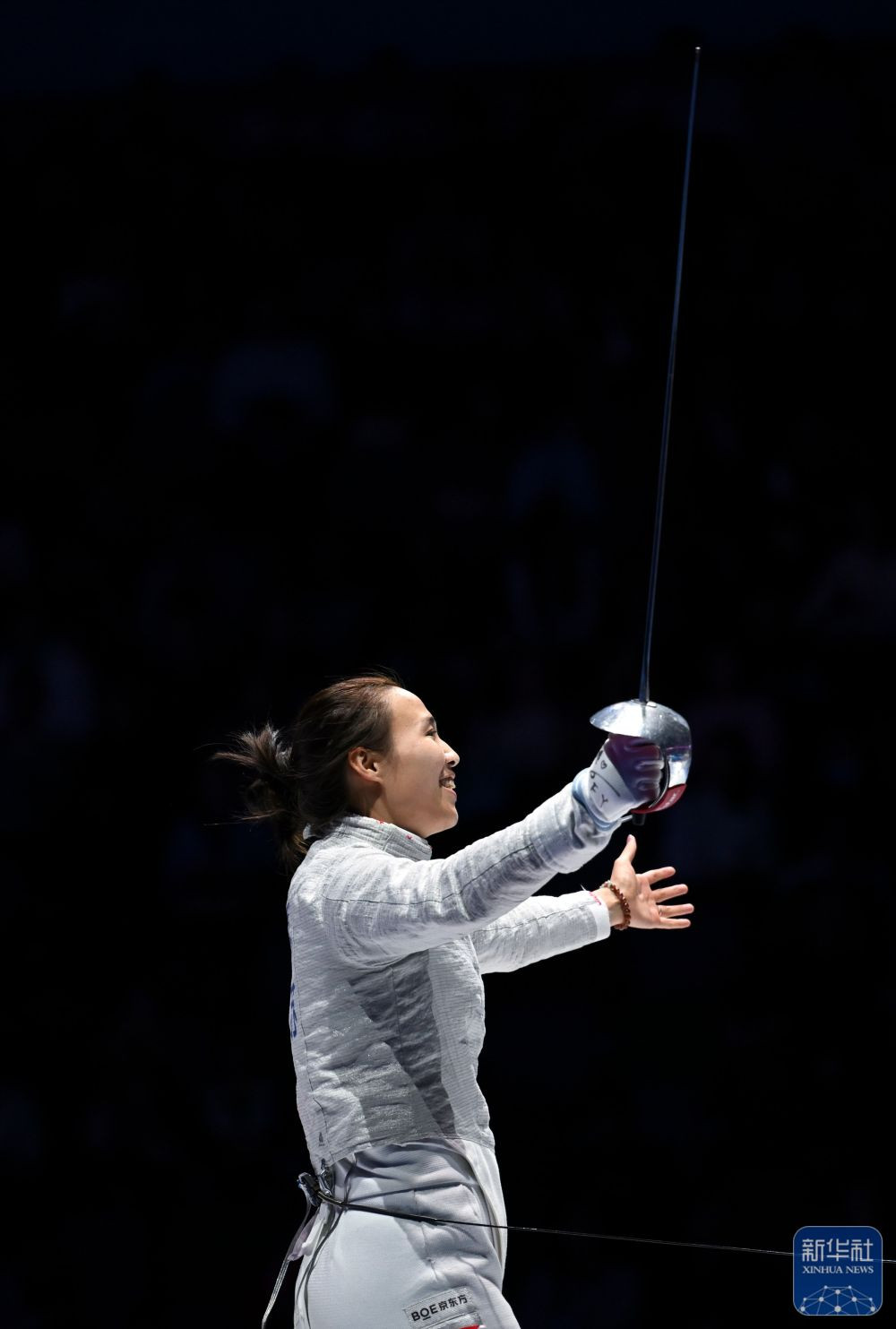 ↑江苏队选手傅颖在比赛后庆祝夺冠。 新华社记者 胡虎虎 摄