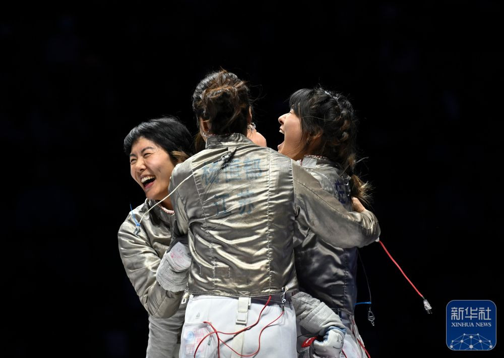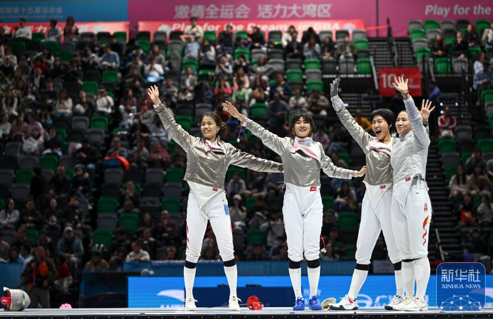 11月19日,在香港进行的第十五届全国运动会女子佩剑团体金牌赛中,江苏队45比40战胜广东队,夺得金牌。