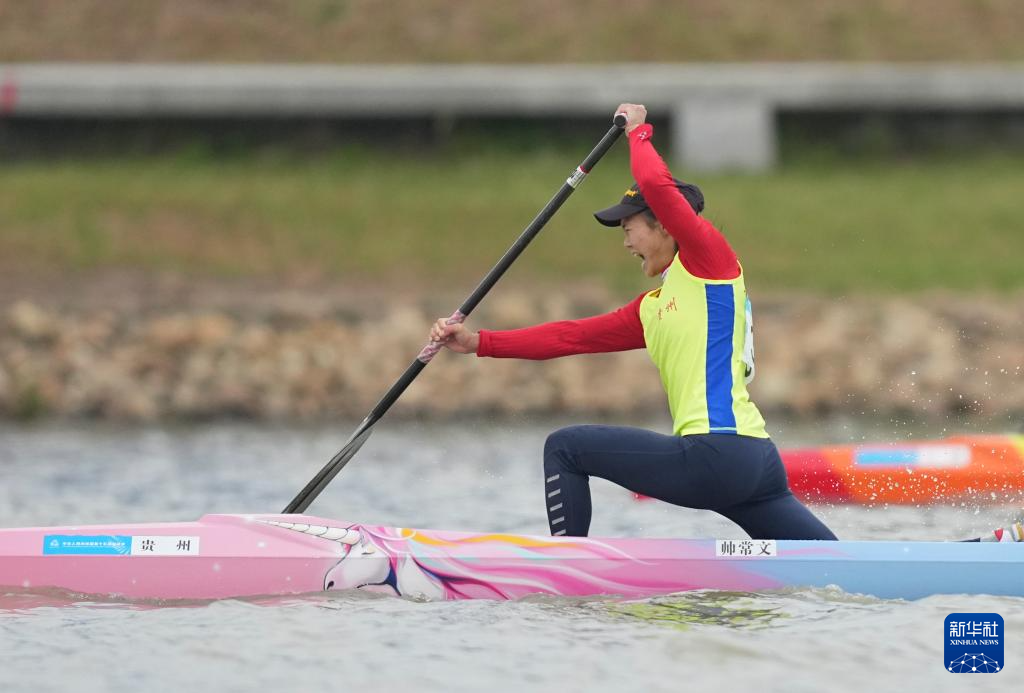 11月19日,第十五届全国运动会皮划艇静水项目女子200米单人划艇决赛在广州举行,贵州选手帅常文最终获得冠军。