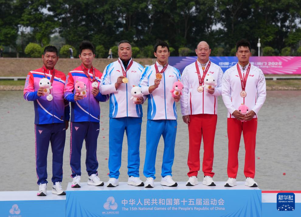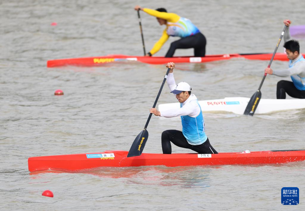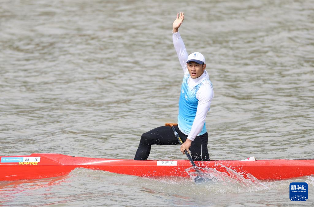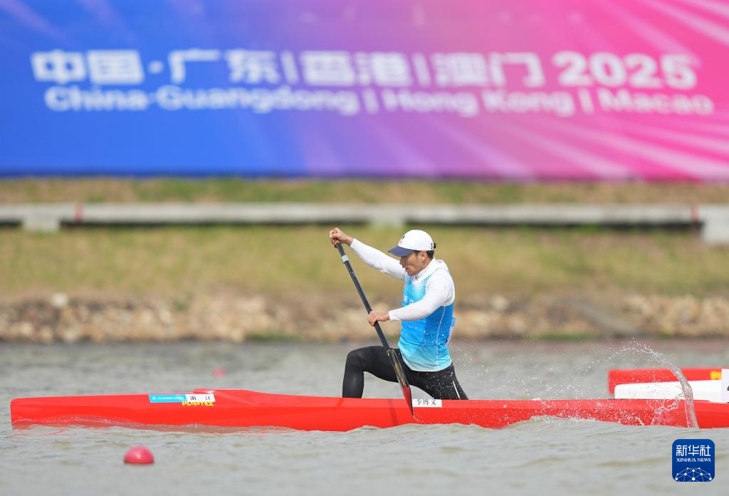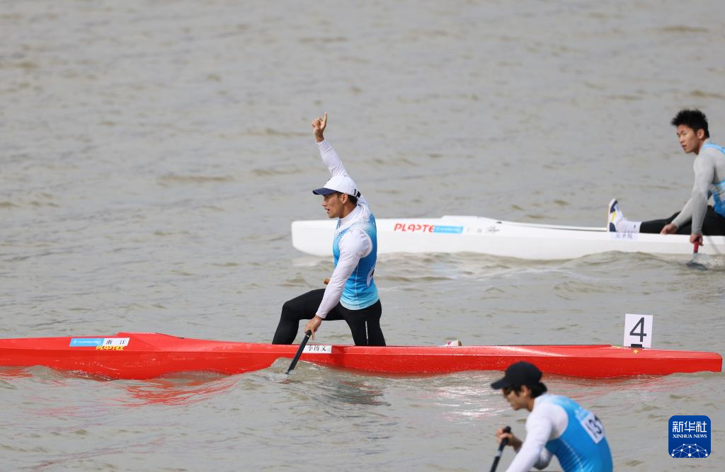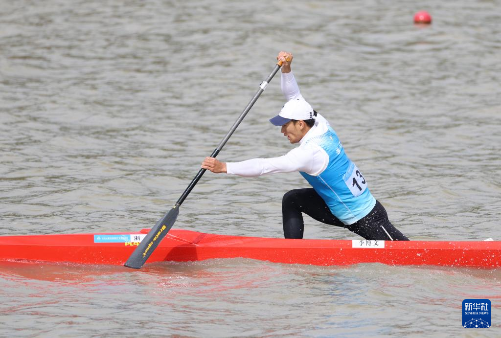 11月19日,第十五届全国运动会皮划艇静水项目男子1000米单人划艇决赛在广州举行。