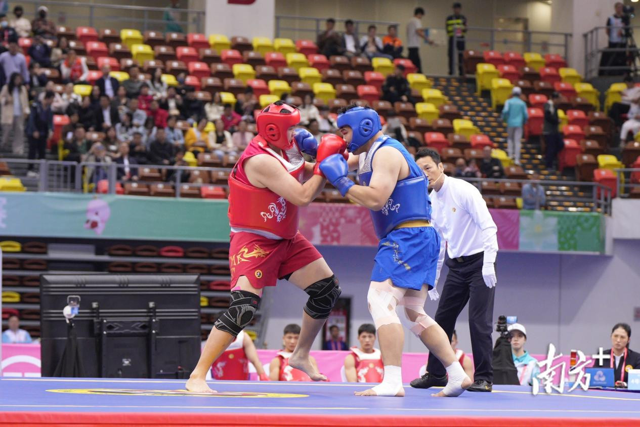 11月13日,十五运会武术散打比赛在湛江开赛。吴东俊 龚钰坤 摄