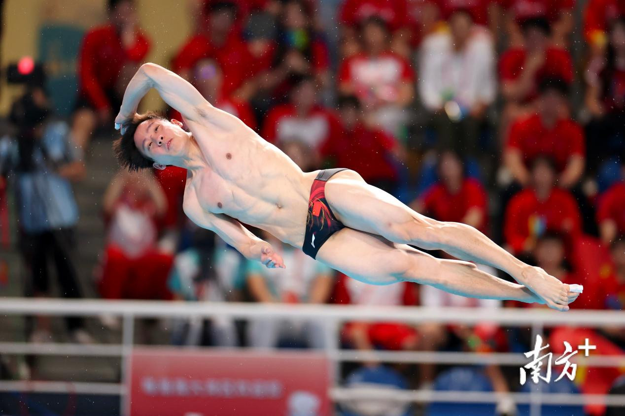 何超在参加跳水男子三米板比赛。南方+记者 吴明 郑新洽 摄