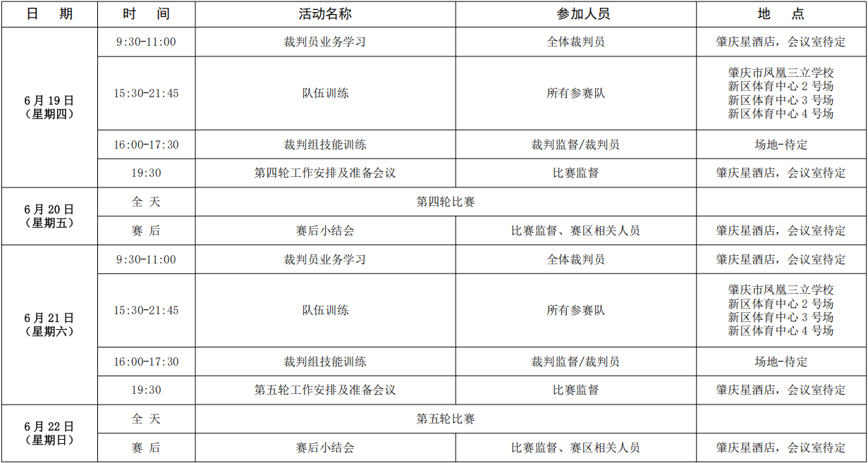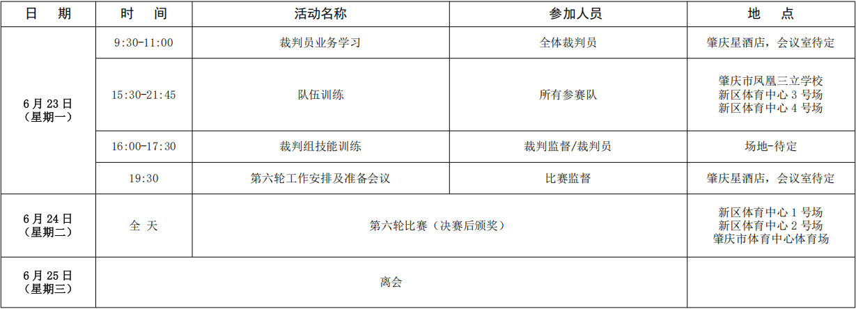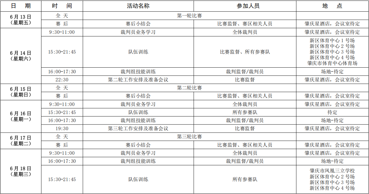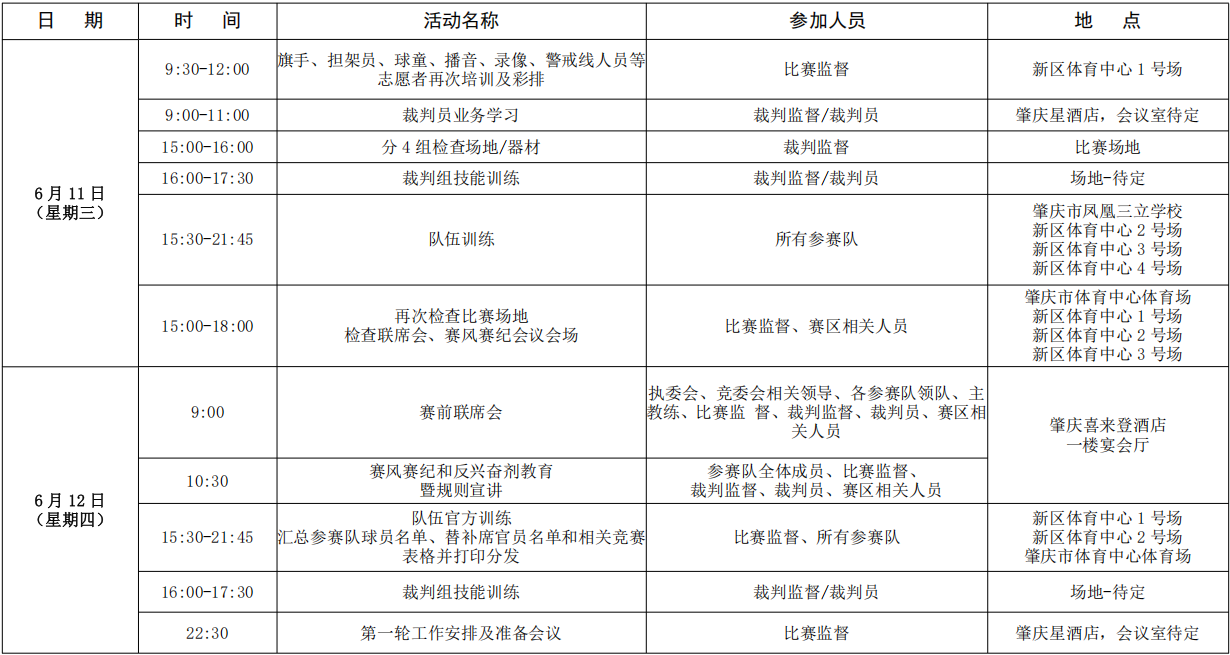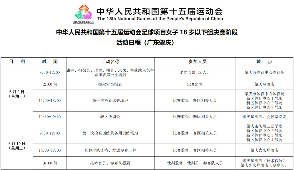 十五运会足球项目女子18岁以下组决赛阶段活动日程(广东肇庆)