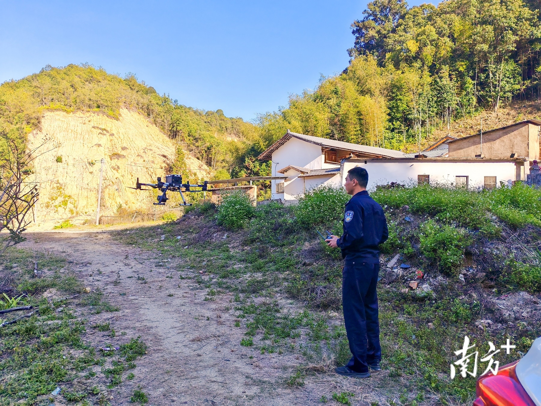 警用无人机升空开展“空中侦察”。 受访者供图