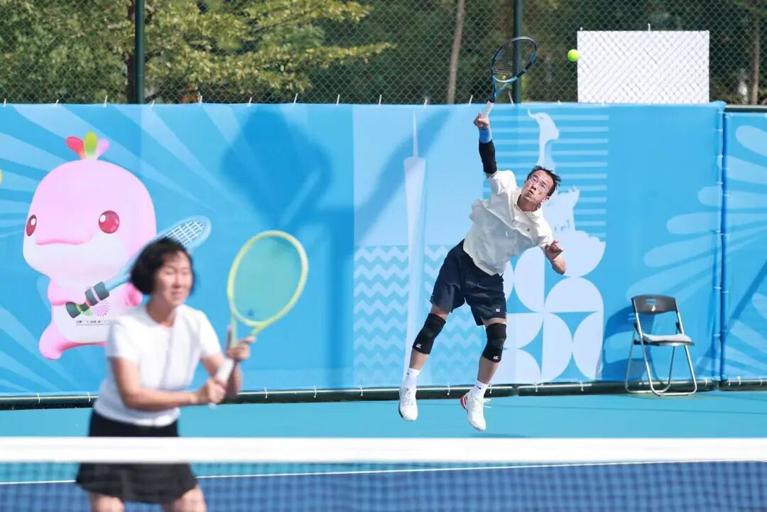走进广州南沙国际网球中心,第十五届全国运动会群众比赛网球项目正在这里展开,11月17日迎来了混合团体、男子团体、女子团体三个项目的决赛。场上虽然参赛的都是业余选手,但球风毫不逊色,他们步伐灵活,配合默契,击球精准有力。一旁的计分牌组别显示着“混合团体第二双打100岁+”的字样,这个“100岁+”的设置是什么意思?记者在比赛现场采访了中国网球协会副秘书长孙文兵,请她详谈混合团体项目设置的初衷和特点。