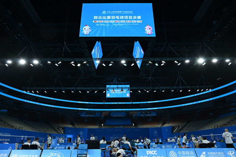 十五运会群众羽毛球比赛也将深圳市体育中心体育馆正式带入全运赛时阶段,该场馆曾经承办过2024年和2025年的中国羽毛球大师赛以及2025年国际篮联女篮亚洲杯等顶尖国际赛事。