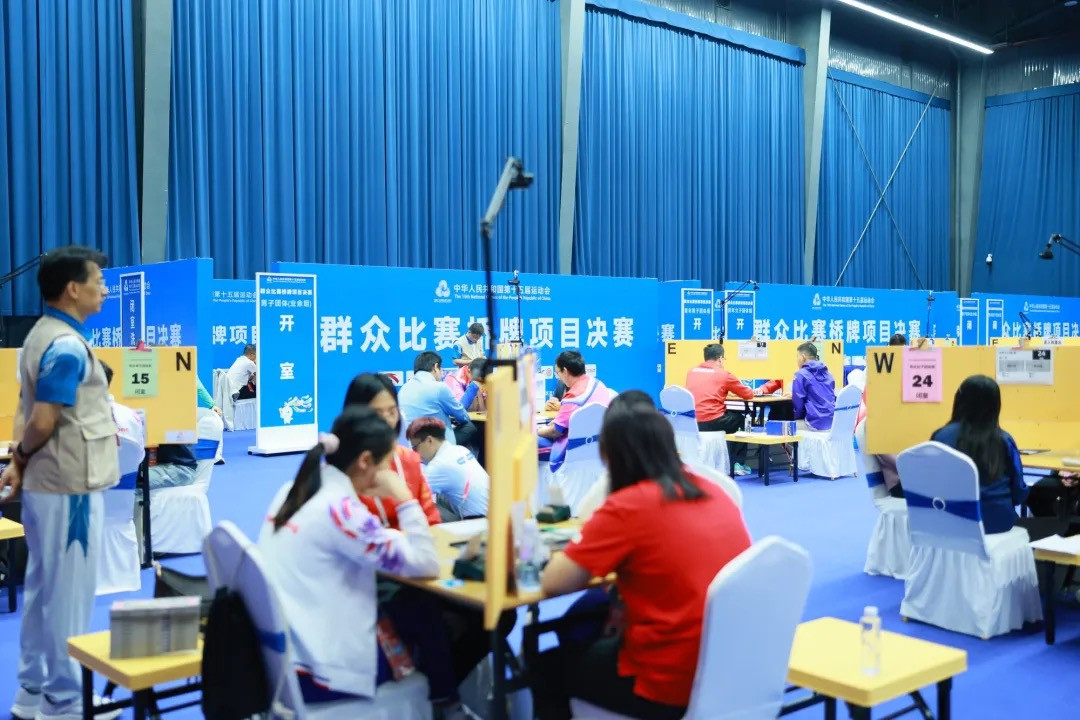 11月3日至7日,第十五届全国运动会群众比赛桥牌项目决赛在深圳罗湖区的深圳棋院(银湖)举行。随着来自全国各地的桥牌精英汇聚一堂,这场历时五天的智力博弈,将决出男子团体公开组、男子团体业余组、女子团体、混合团体及青年男女团体等6个项目的金牌归属。